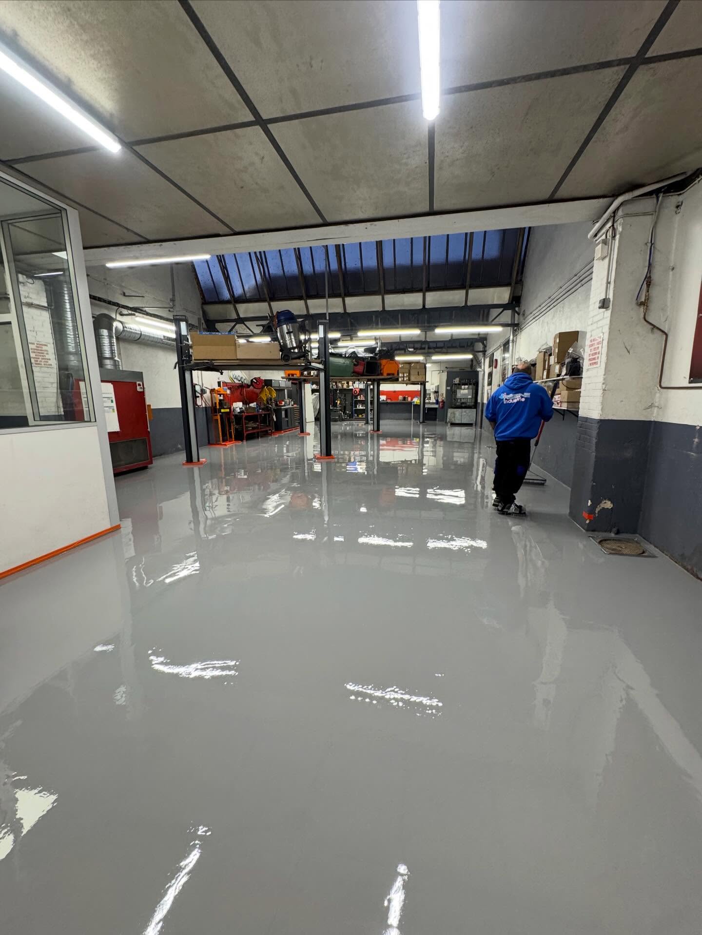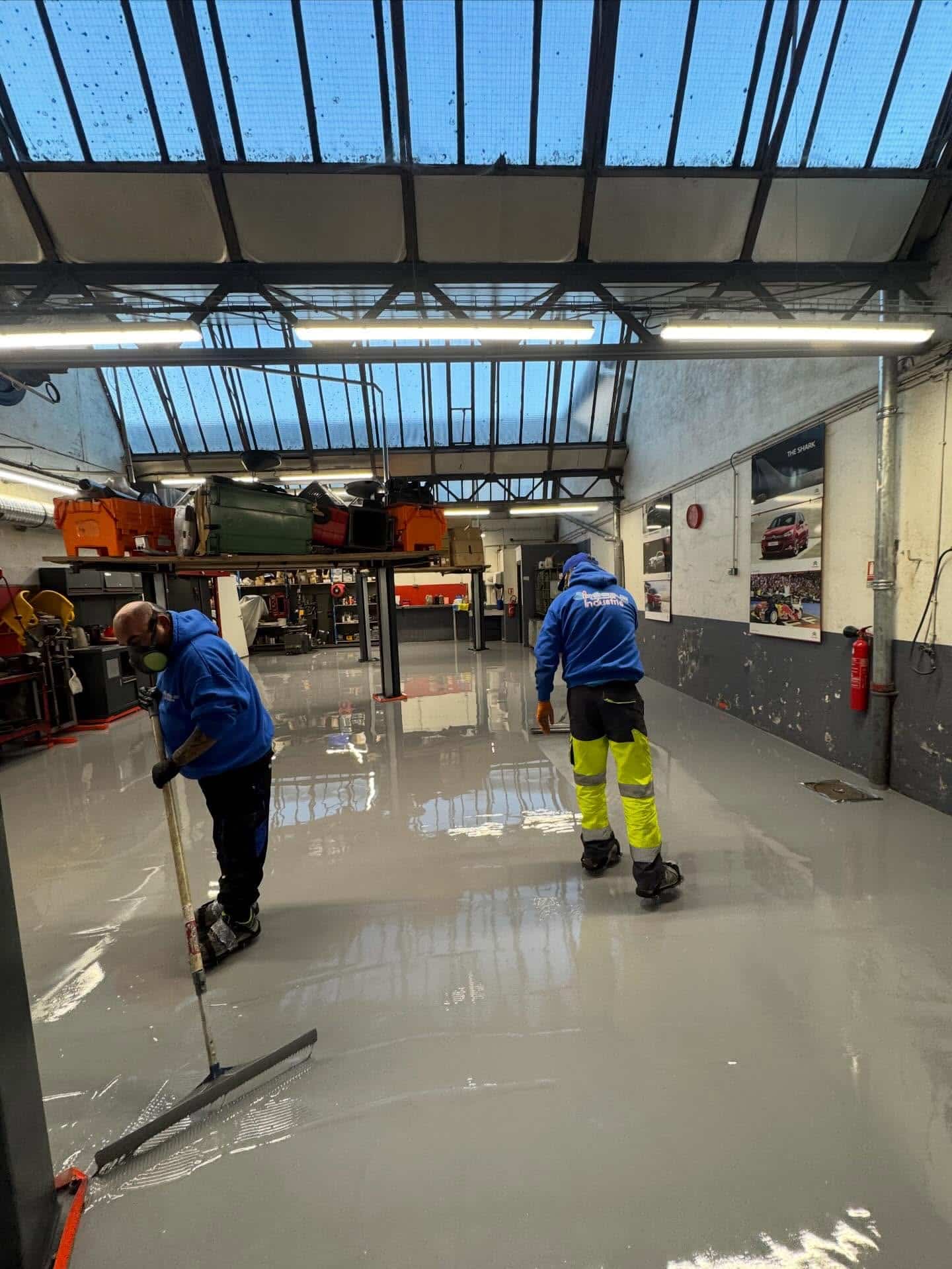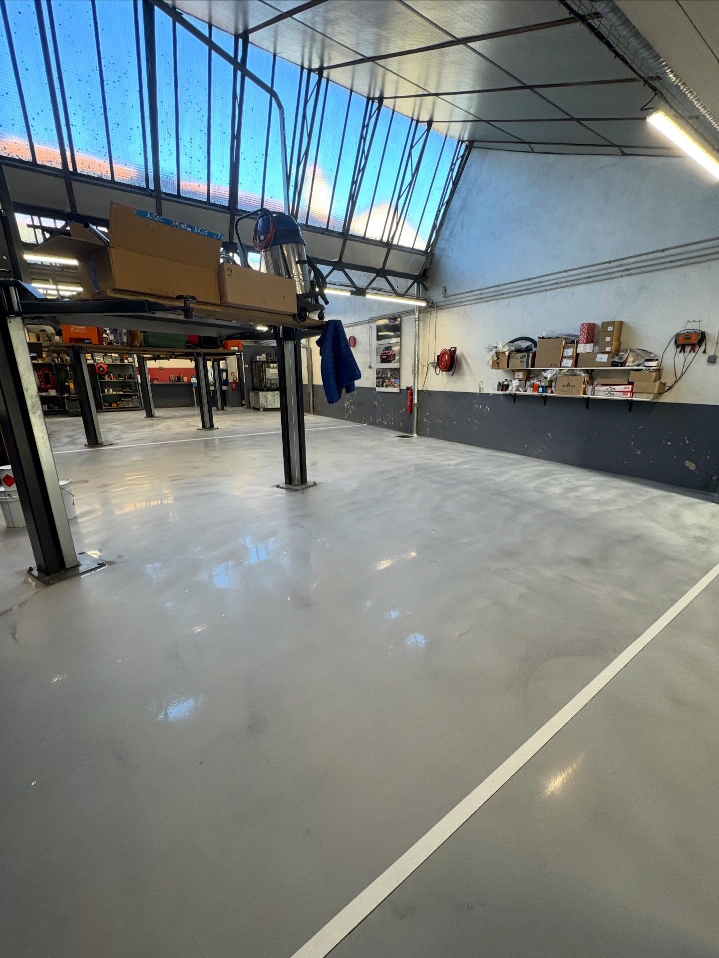 Le résultat final offre une surface homogène, brillante et parfaitement adaptée à l’activité d’un garage automobile. Ce type de sol améliore à la fois l’esthétique de l’atelier, la facilité d’entretien et les conditions de travail.