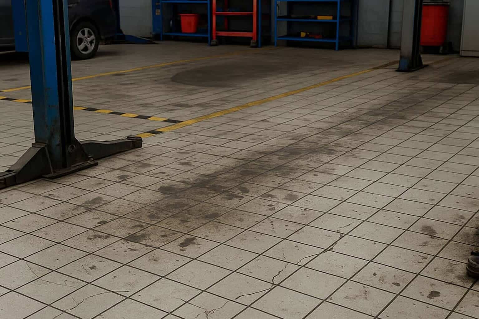 Un garage de la région Grand Est nous a sollicités pour la rénovation complète du sol de son atelier mécanique. L’ancien revêtement en carrelage présentait de nombreuses fissures, des zones glissantes à cause des hydrocarbures, et devenait difficile à nettoyer malgré des entretiens réguliers.
